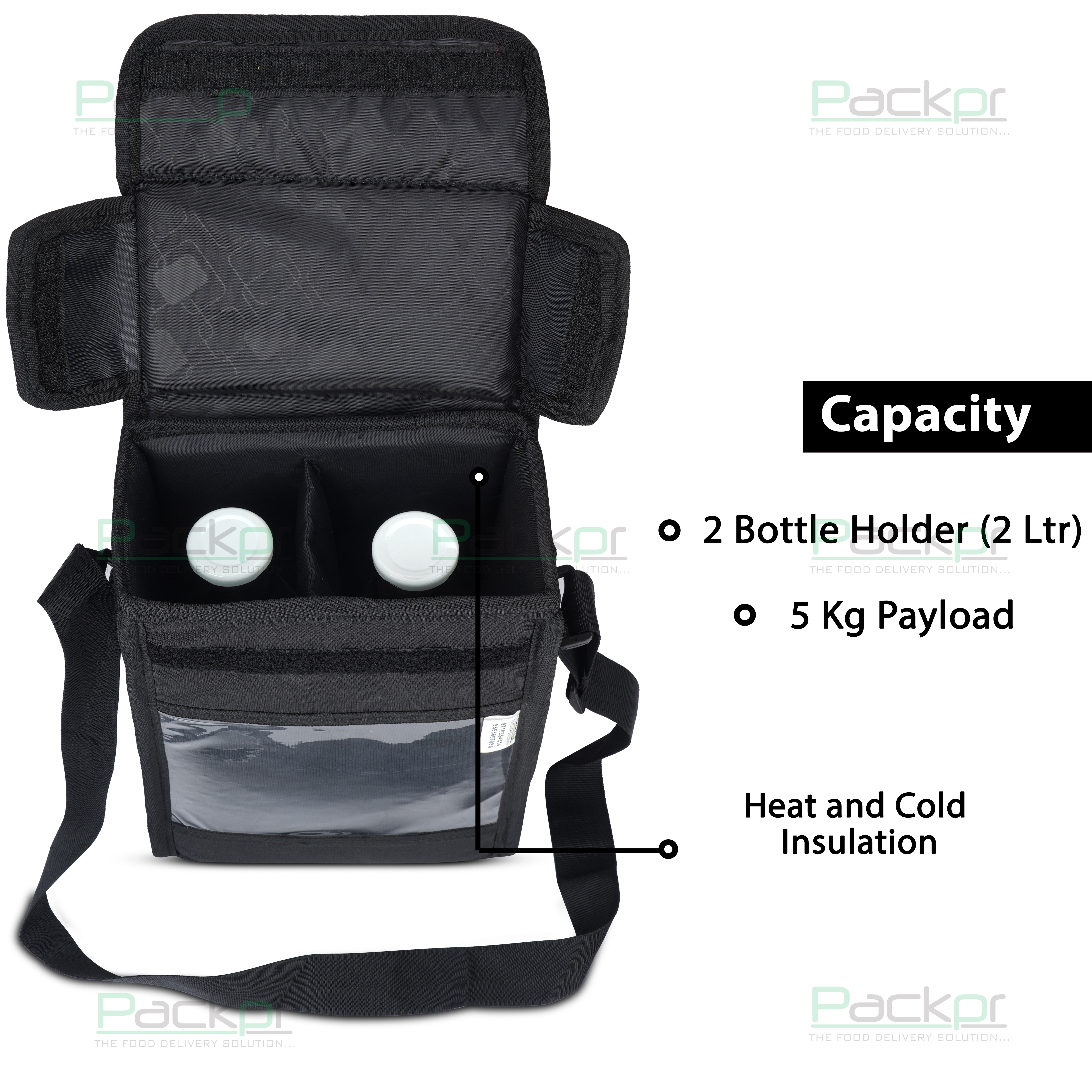packpr 2lts bottle bag can be used for milk and water bottle delivery , can be carried with icepad